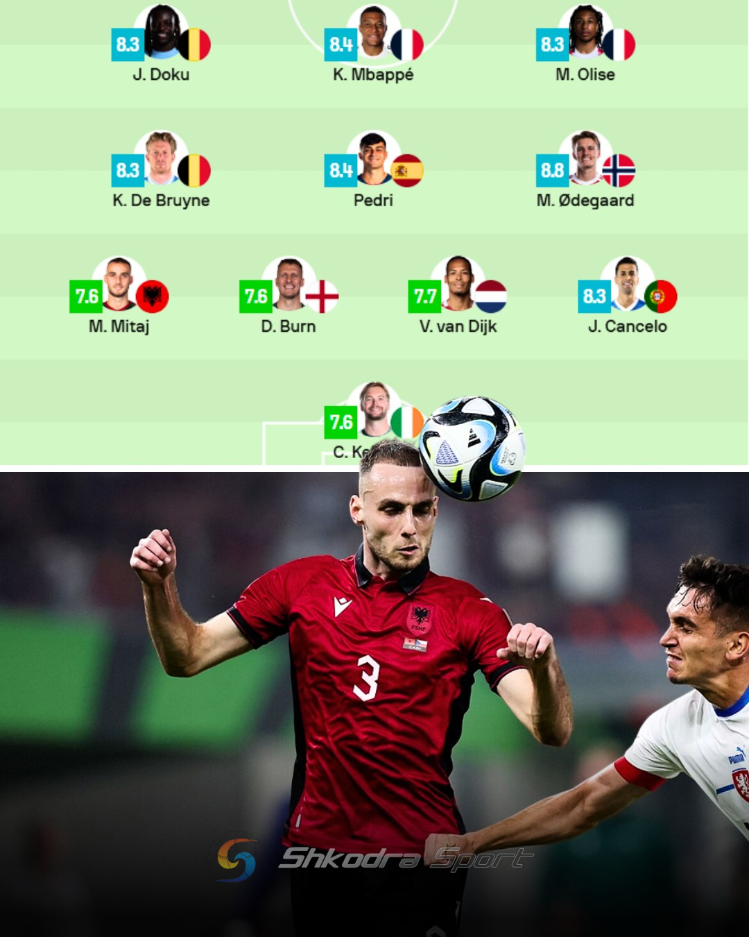 Mario Mitaj është unik. Mbrojtësi i majtë i Kombëtares shqiptare është përfshirë nga “Sofascore” në formacionin e sezonit kualifikues për Botërorin në Europë.