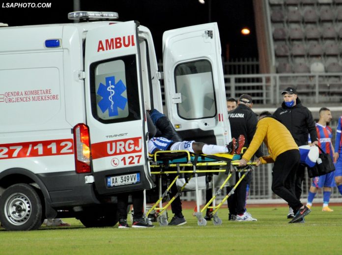 Futbollisti i Tiranës, Isak Gamfi, pësoi një dëmtim të rëndë në minutën e 67-të të klasikes ndaj Vllaznisë, teksa u desh ndërhyrja e të dyja stafeve mjekësore dhe e ambulancës, që gjendja e tij të përmirësohej.