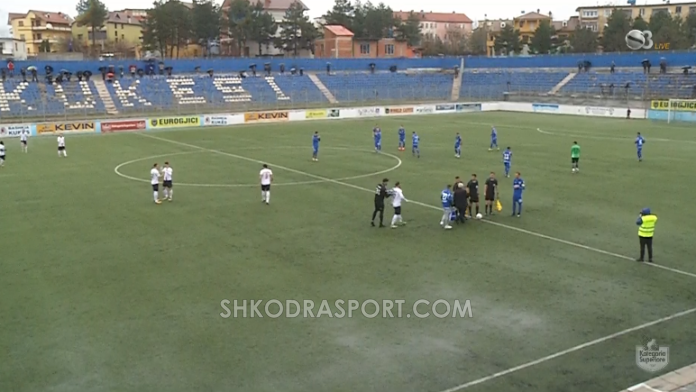 Rezultati do të zhbllokohej në minutën e 34-të. Arbitri Hamiti akordon një goditje dënimi shumë të kontestuar nga shkodranët në hyrje të zonës së tyre.