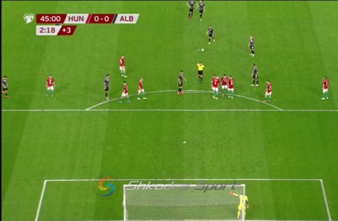 Ne barazim 0-0 eshte mbyllur pjesa e pare e ndeshjes ne mes Hungarise dhe Shqiperise. Nje 45 minutesh qe nuk ka prodhuar raste ne asnjeren porte.