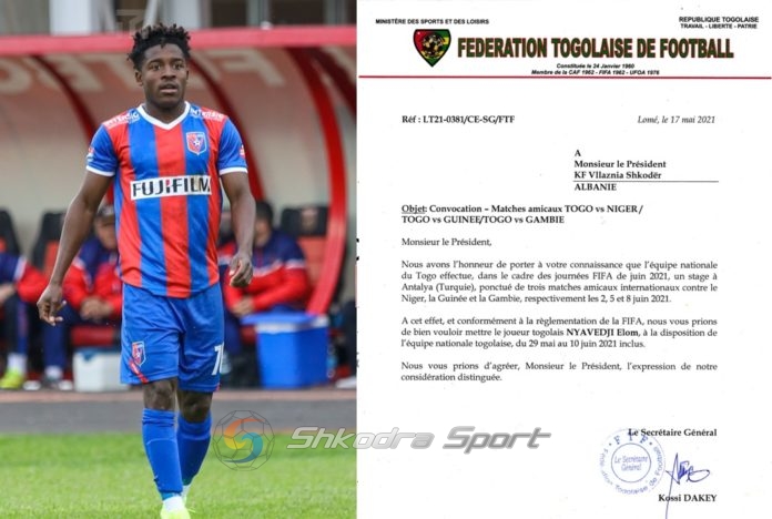 Nuk behet fjale per kombetaren shqiptare por per ate te Togos. Ka qene vete klubi shkodran qe ka publikuar sot shkresen e marre nga Federata e ketij vendi per grumbullimin e futbollistit Elom Nyavedji per tre ndeshjet miqesore qe kjo kombetare do te zhvilloje ne fillim te muajit qershor.