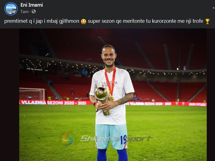 “Premtimet që i jap i mbaj gjithmonë. Super sezon që meritonte të kurorëzohej me një trofe”, shkruan Imami. Mbrojtësi pritet të rinovojë me shkodranët, teksa ofertat për të nuk kanë munguar.