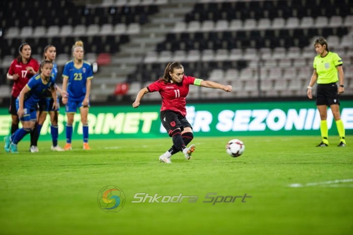 Sulmuesja e Vllaznise Megi Doçi kaloi Shqipërinë në avantazh në pjesën e parë duke goditur saktë nga penalltia te cilen e kishte fituar vete pas nje pengimi brenda zone.