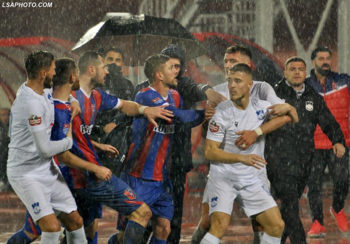 Aleksi u pengua me gjyqtarin në përpjekje për të shkuar tek Imeri. Cjapi e ndëshkoi me të verdhë për protesta lojtarin e Teutës.
