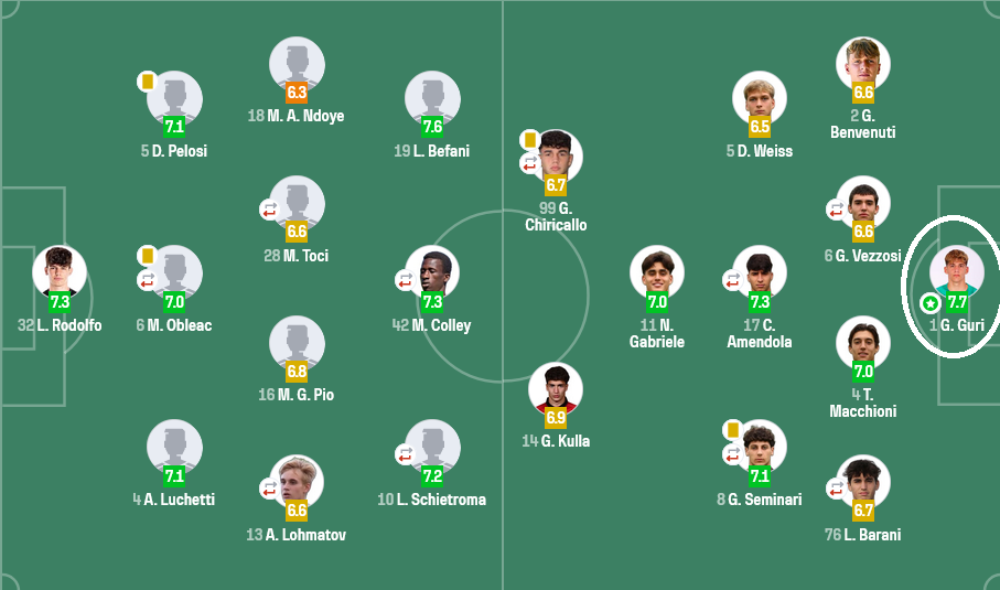 Gabriel Guri po luan sezonin e tij të parë në futbollin italian teksa është bërë pjesë e Sassuolo U20 dhe ndonëse pak me vonesë, po merr vendin që i takon. Dje luajti ndeshjen e tij të tretë si titullar dhe padyshim që ai pritet të jetë titullar edhe në ndeshjet e ardhshme.