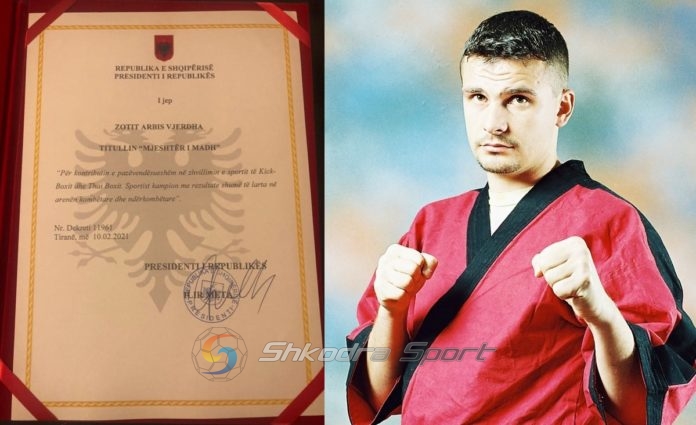 “Presidenti i Republikes i jep zotit Arbis Vjerdha titullin “Mjeshter i Madh” me motivacionin: “Per kontributin e pazevendesueshem ne zhvillimin e sportit te kick- boxit dhe Thai Boxit. Sportist kampion me rezultate shume te larta ne arenen kombetare dhe nderkombetare”.