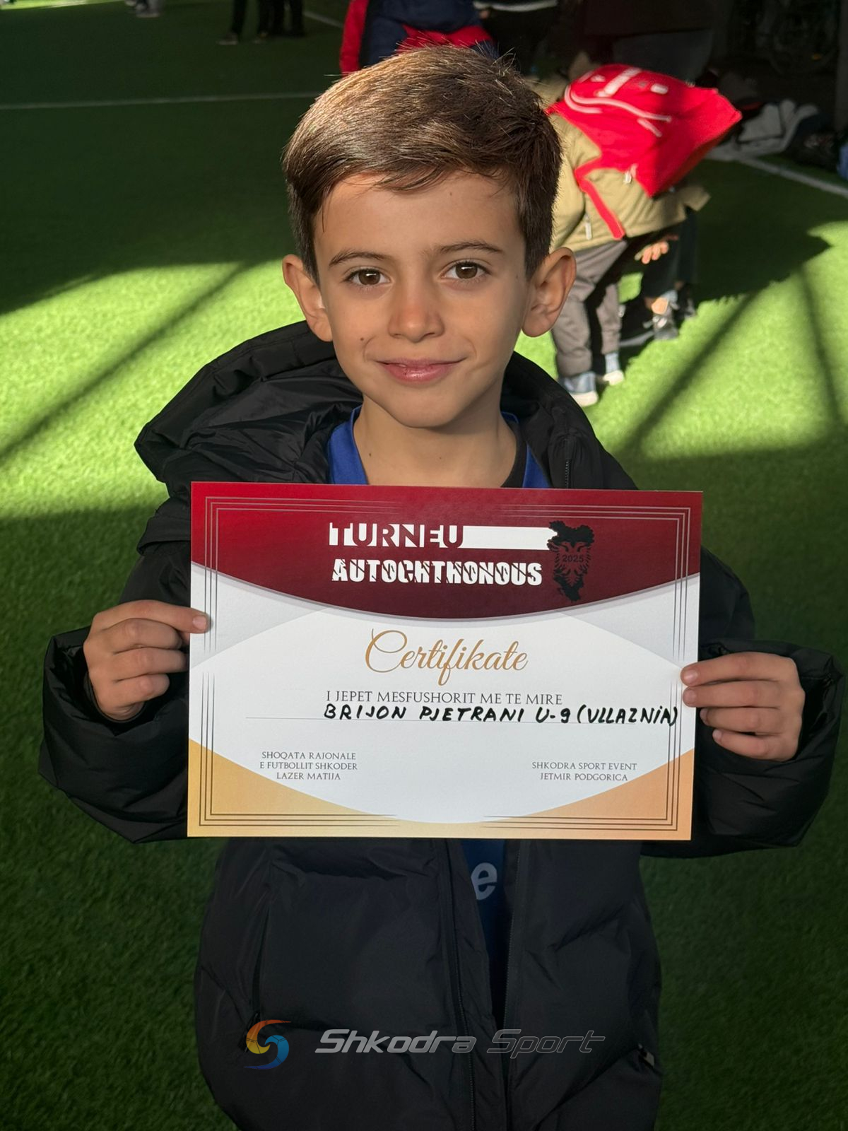 Vetëm 8 vjeç, por futbollin e ka shumë pasion. Ka vetëm një vit që ka nisur ta ushtrojë atë rregullisht, por menjëherë ka nisur të spikasë për talentin e tij. E kemi fjalën për Brion Pjetranin. Ai ditën e sotme ka marrë diplomën si mesfushori më i mirë i turneut “AUTOCHTHONUS 2025” për grupmoshën U9. Një diplomë që ia ka dorëzuar ish- futbollisti i Vllaznisë Rubin Hebaj.