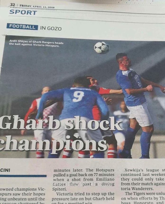 Jo më kot, edhe kjo gazetë në foton e madhe të saj ka këtë futbollist ku shkruan: “Ardit Shkjau i Gharb Rangers godet