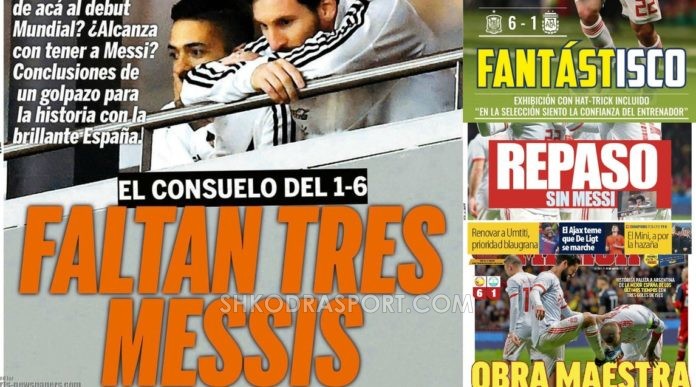 Olé: “Disfatë historike. Na duhen tre Mesi. Humbje e tmerrshme me goleadë kundër Spanjës, pa Mesin dhe me një ekip të brishtë si rrallëherë.