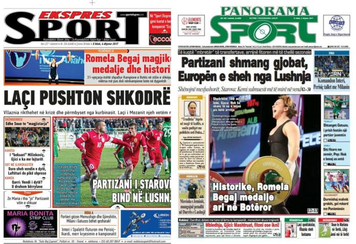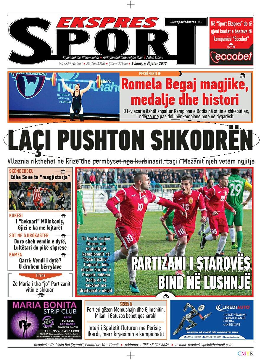 Titujt e gazetave të sotme sportive padyshim që do të kishin në qendër të vëmendjes humbjen e djeshme të Vllaznisë ndaj Laçit brenda në “Loro Boriçi”. Jo më kot, “Sport Ekspres” është hapur me kryeartikullin: LAÇ PUSHTON SHKODREN. Më poshtë shkruhet se Vllaznia rikthehet në krizë dhe përmbyset nga kurbinasit.
