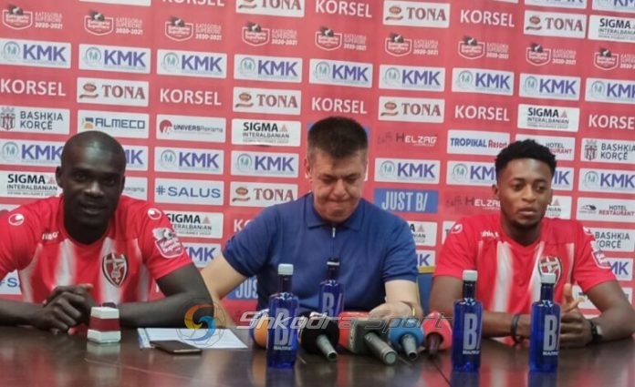 Para mediave, shefi i klubit, Ilirjan Përmeti, ka prezantuar sot sulmuesin Ngisah Bismark si dhe mbrojtësin Zhozef Asante, të cilët kanë nënshkruar me korçarët dhe pritet të jenë elementë të gatshëm për formacionin titullar.