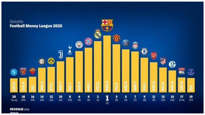 Studimi vjetor nga Deloitte apo siç njihet ndryshe Money League tregon klubet me përfitimet më të mëdha vjetore, ku në vendet e para vijojnë të jenë Barcelona dhe Real Madrid.