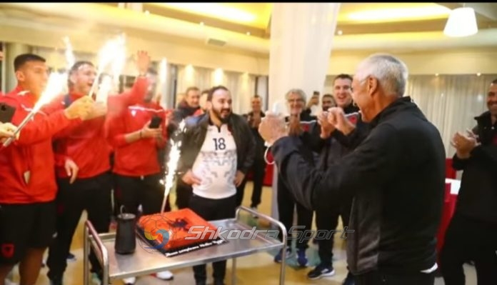 Trajneri Reja ka festuar datëlindjen dhe stafi i Shqipërisë ka menduar për një surprizë të veçantë. Me hedhjen e fishekzjarreve dhe tortën me simbolin e Shqipërisë, trajneri italian nuk e fshehu kënaqësinë e momenteve të bukura që po përjeton.
