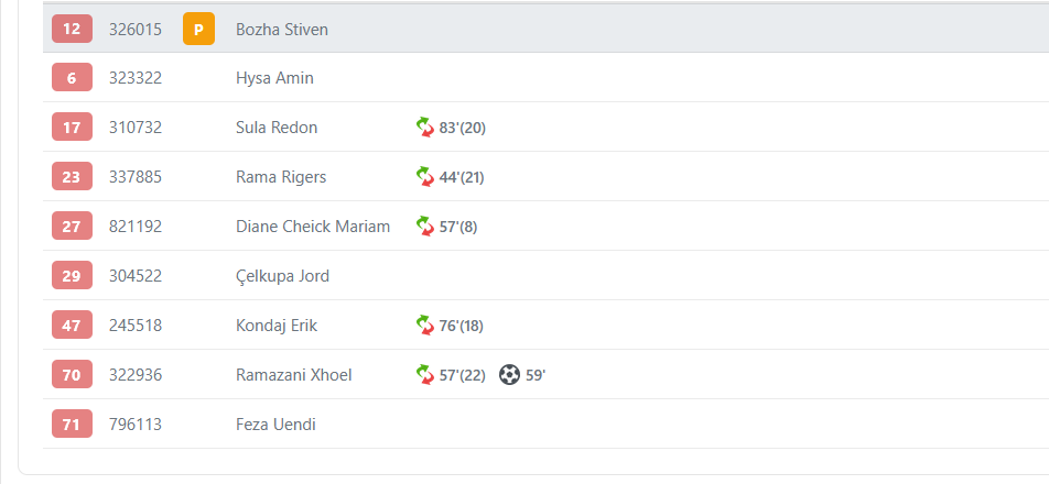Siç mund ta shikoni edhe më poshtë, Dinamo “B” ka bërë 5 zëvendësime në këtë ndeshje, në 4 ndalesa teksa rregullorja e thotë qartë se duhen bërë vetëm 3. Por dinamovitët kanë gabuar duke i bërë zëvendësimet në minutat 44, 57 (2), 76 dhe 83.