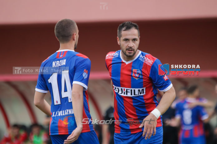 Topi i gjate i Markut nga mesfusha, ka gjetur fillimisht koken e Krujes qe ne forme asisti e ka kaluar tek Dilaver qe po me koke e ka çuar ne rrjete. Dhe ne fund te gjithe kane festuar bashke./SHKODRA-SPORT.COM/